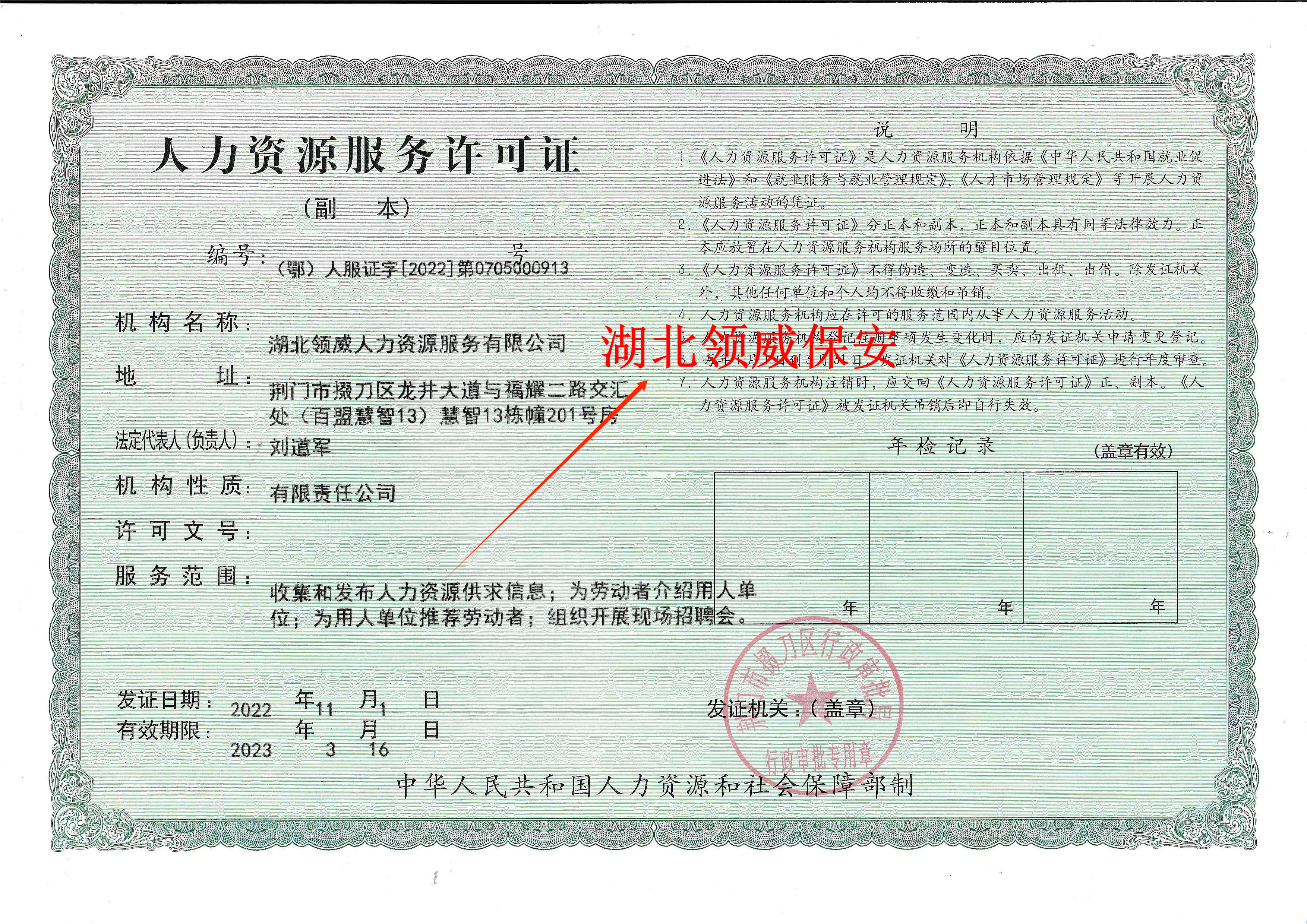 地址:湖北省荊門市掇刀區(qū)龍井大道百盟慧谷科技產(chǎn)業(yè)園慧智13棟201室 湖北領(lǐng)威保安服務(wù)有限公司